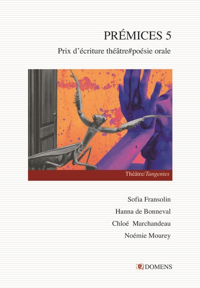 Ce volume réunit les textes des quatre lauréates la cinquième édition du prix Prémices, décerné le 11 février 2026 à la Cave Poésie à Toulouse. Les lauréates sont Sofia Fransolin, Hanna de Bonneval, Chloé Marchandeau, Noémie Mourey. Le prix Prémices, fondé par Lydie Parisse, est un prix d'écriture dramatique annuel qui fait aussi la part belle à la poésie orale, et récompense les textes en langue française d'étudiantes et d'étudiants inscrits en licence, en master, en doctorat, et dans diverses écoles, en France et à l'étranger, et dont la perspective est essentiellement en recherche-création. Les textes sont publiés dans le cadre de la série Tangentes, à l'intérieur de la collection Théâtre des éditions Domens. La série Tangentes est consacrée aux écritures croisées entre théâtre et écritures de l'oralité, qui ne correspondent pas nécessairement à l'idéal de la « pièce bien faite », mais qui, sans être absconses, incluent des recherches à la croisée des langages. Poèmes dramatiques, poésie orale, textes dramatiques qui s'inscrivent dans une recherche résolument exploratoire, affirmant une langue, un univers et une démarche singuliers, plaçant le texte au centre, dans une langue porteuse de théâtralité.